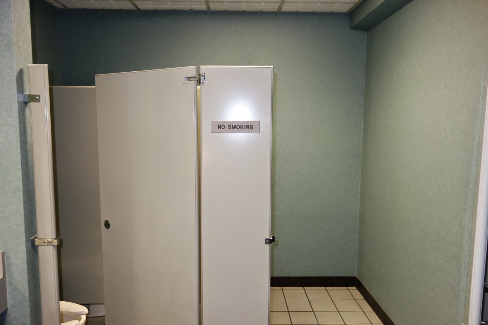 We're just a few short days away from completing two restroom remodels in a commercial building near Newport. Design plans were pulled together before the holidays and after a few months of scheduling and reviews the client was finally ready to pull the trigger. These old restrooms were in pretty dated shape. They sit on the first floor of a shared office building that's home to a financial group, doctors offices, psychologists, boating and marine offices, a sushi restaurant and even a coffee place. It's a great "U" shaped building that really needed some help in updating its facilities for the tenants. Here are a few before images: